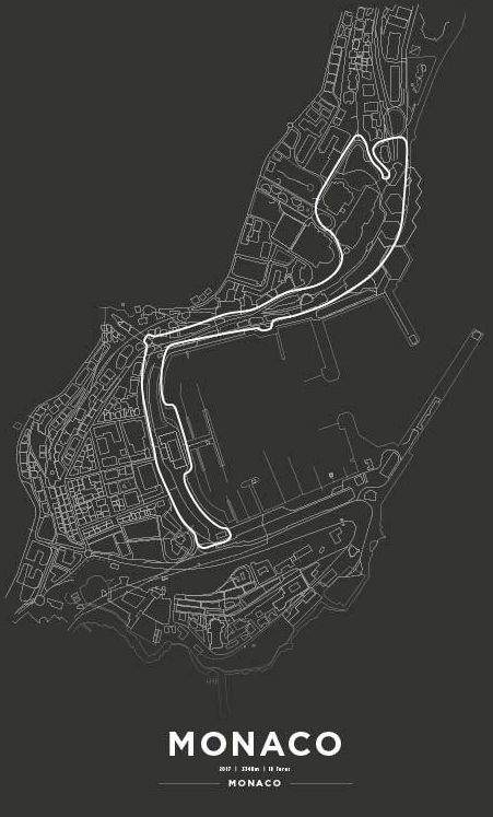 Minimalist track posters of legendary F1 circuits — designed for offices, garages and race rooms.